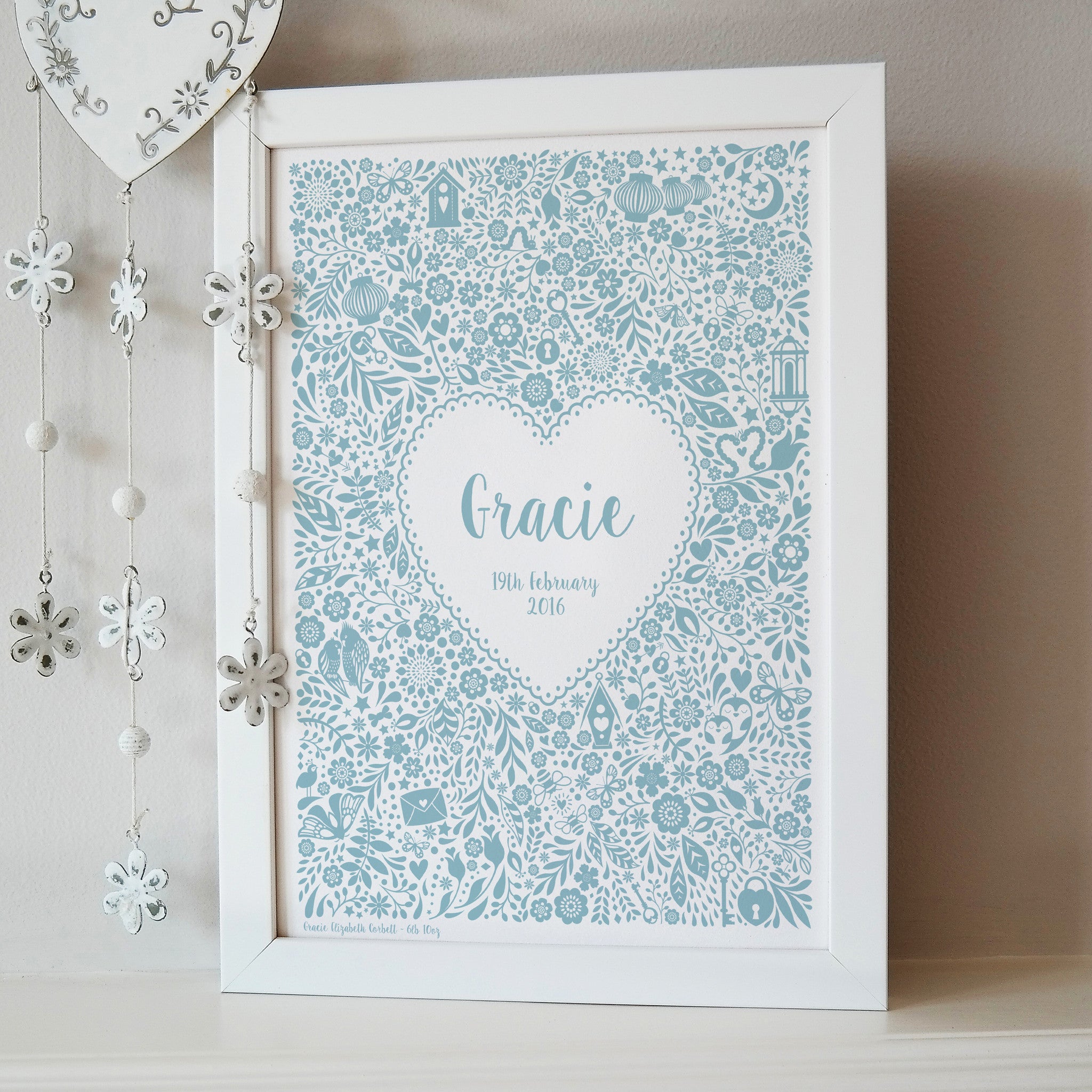 A beautiful personalised heart print that will make a lovely keepsake for a new parent.