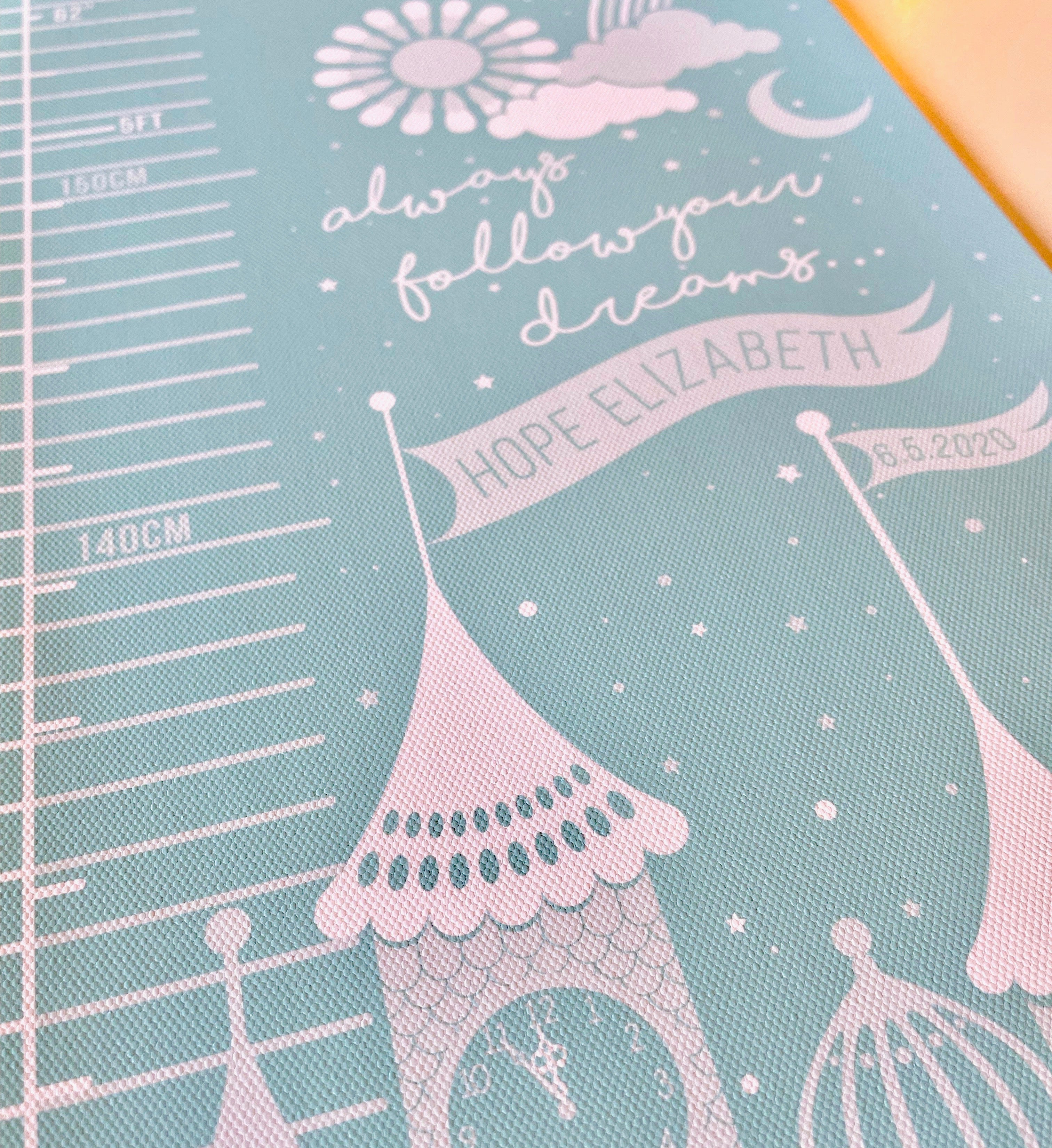 A beautiful fairytale castle canvas height chart that will make the perfect accessory for a nursery, playroom or child's bedroom.