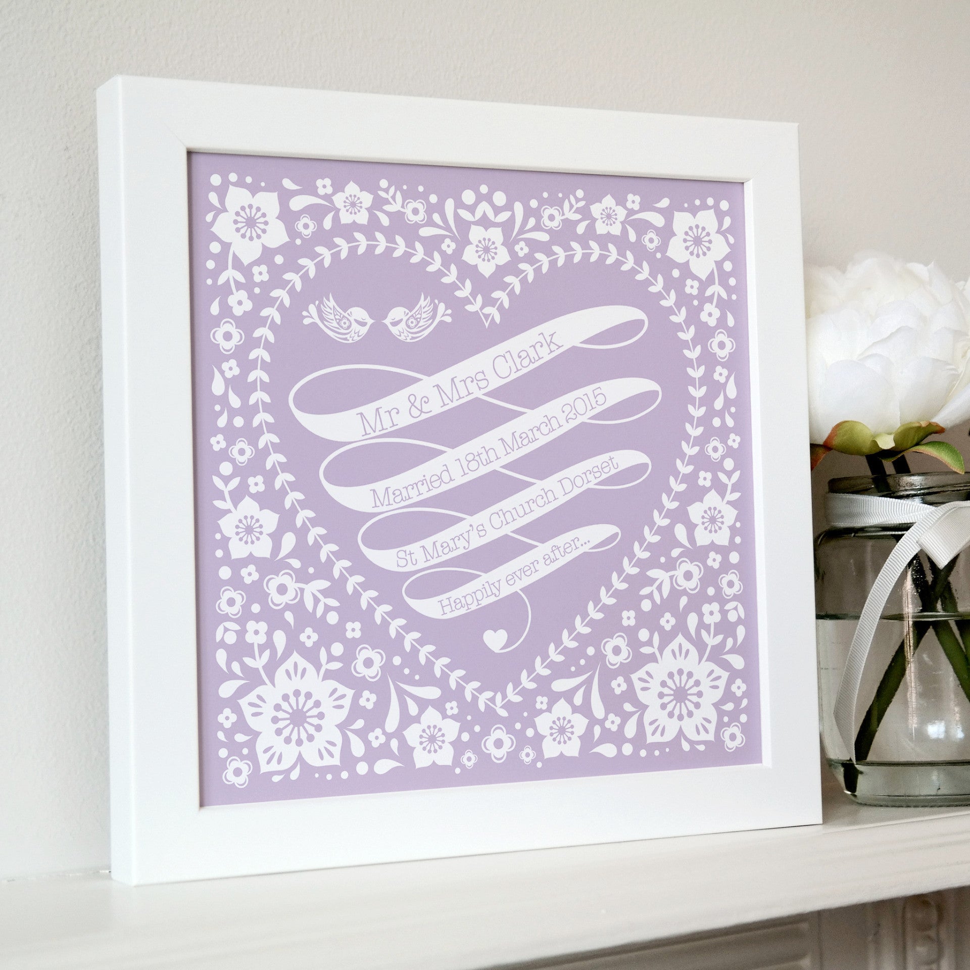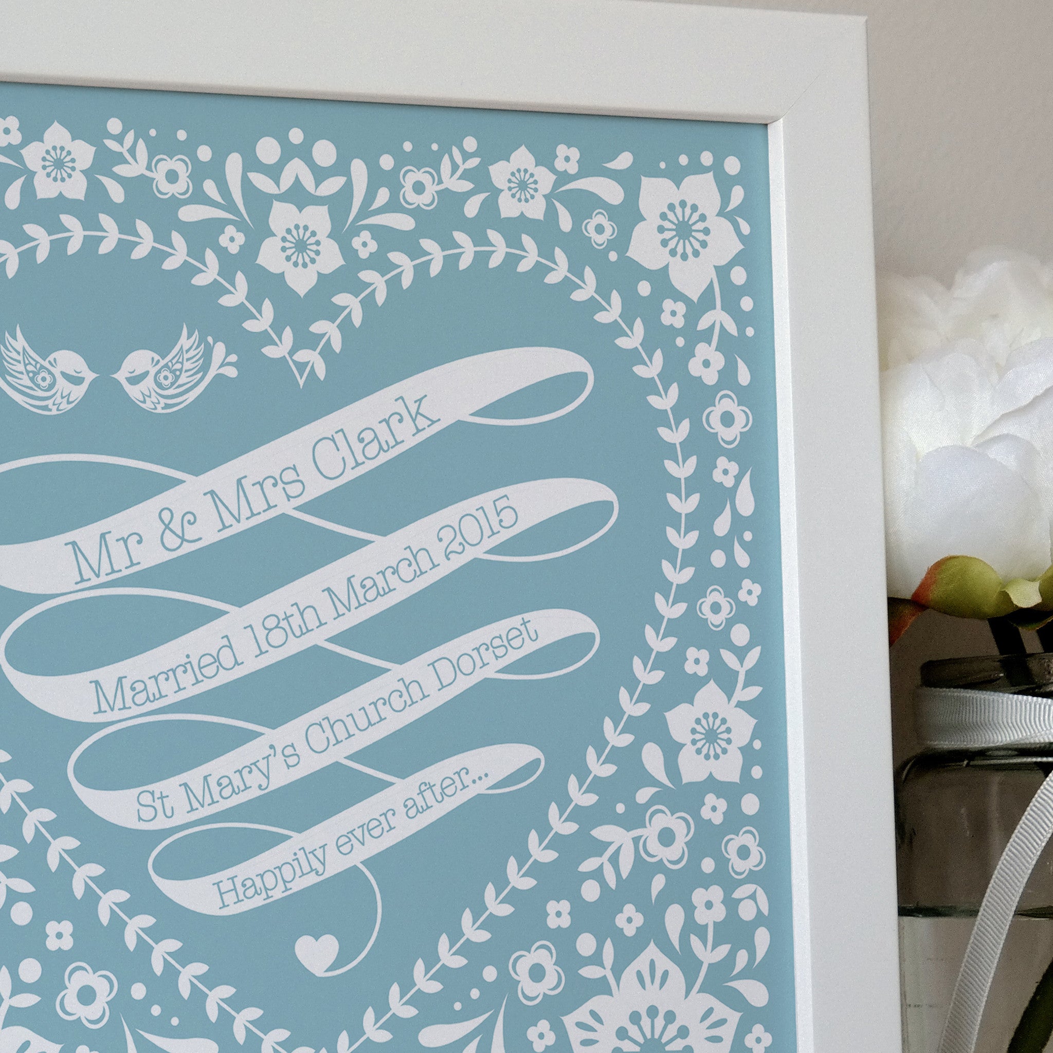 This personalised heart illustration will make a lovely wedding or anniversary present for the happy couple.