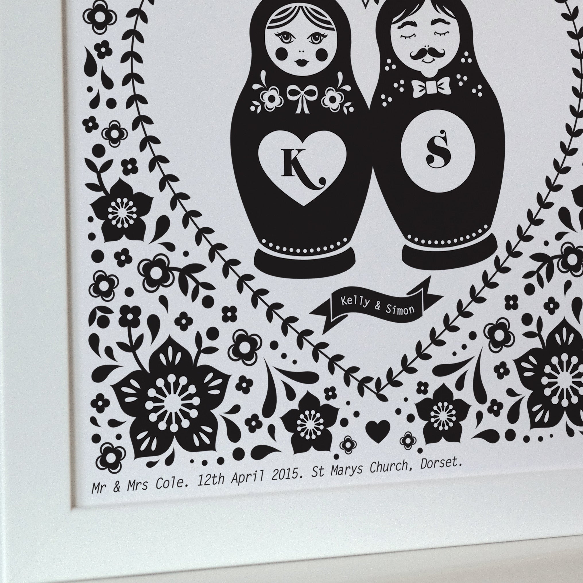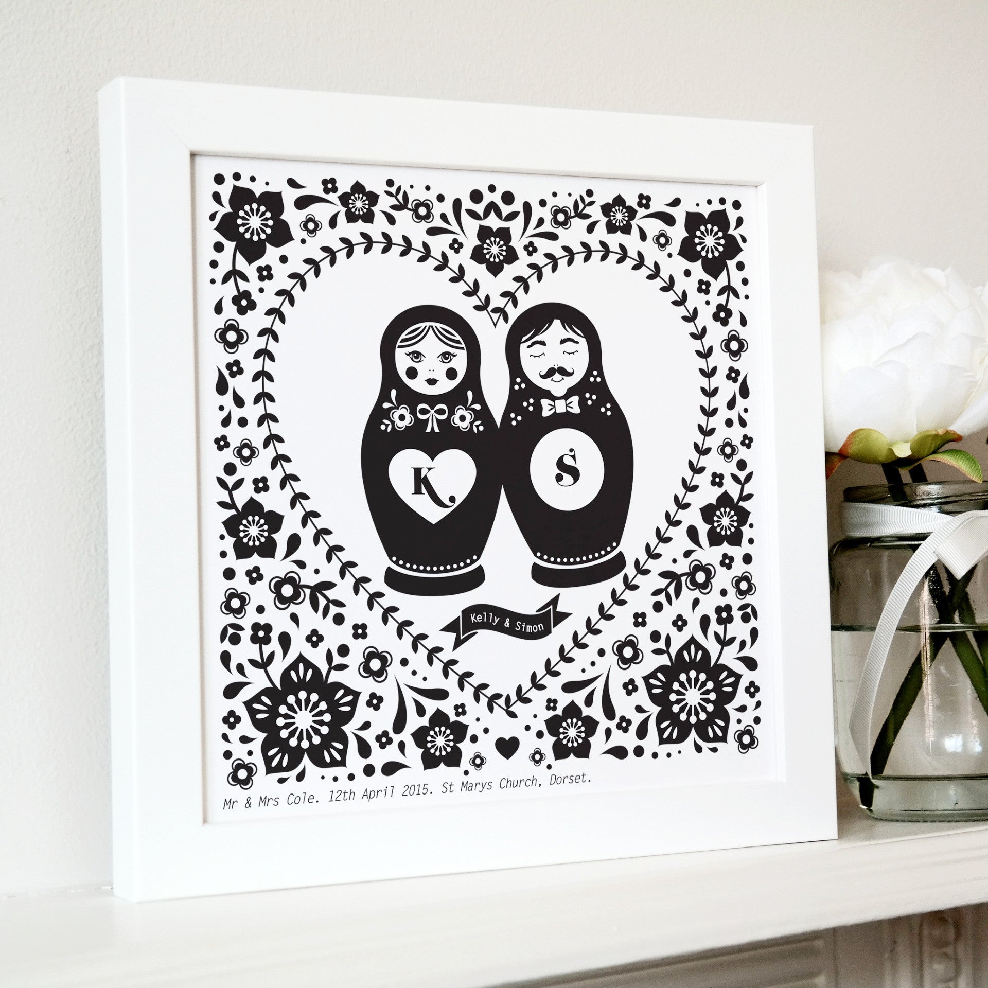 This cute Russian Doll illustration is the perfect gift to give to someone special. The ideal gift for a wedding, engagement or anniversary.