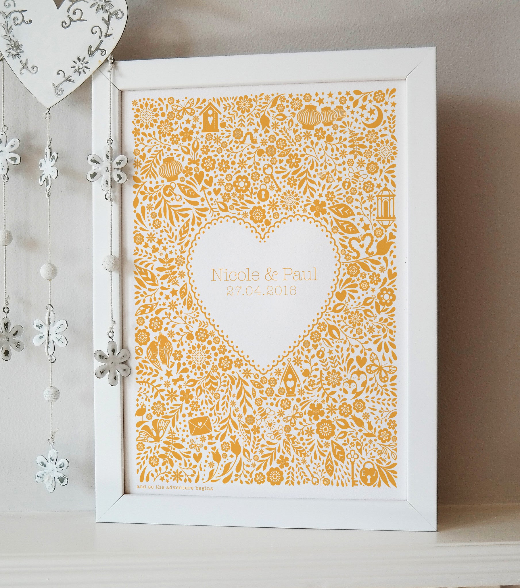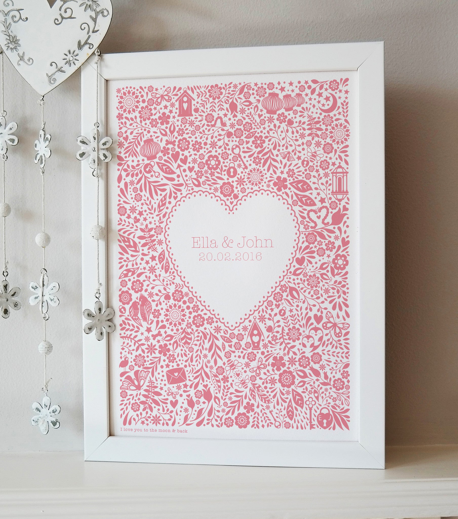 This print can be personalised with the couples names and their special date- the perfect engagement, wedding or anniversary gift.