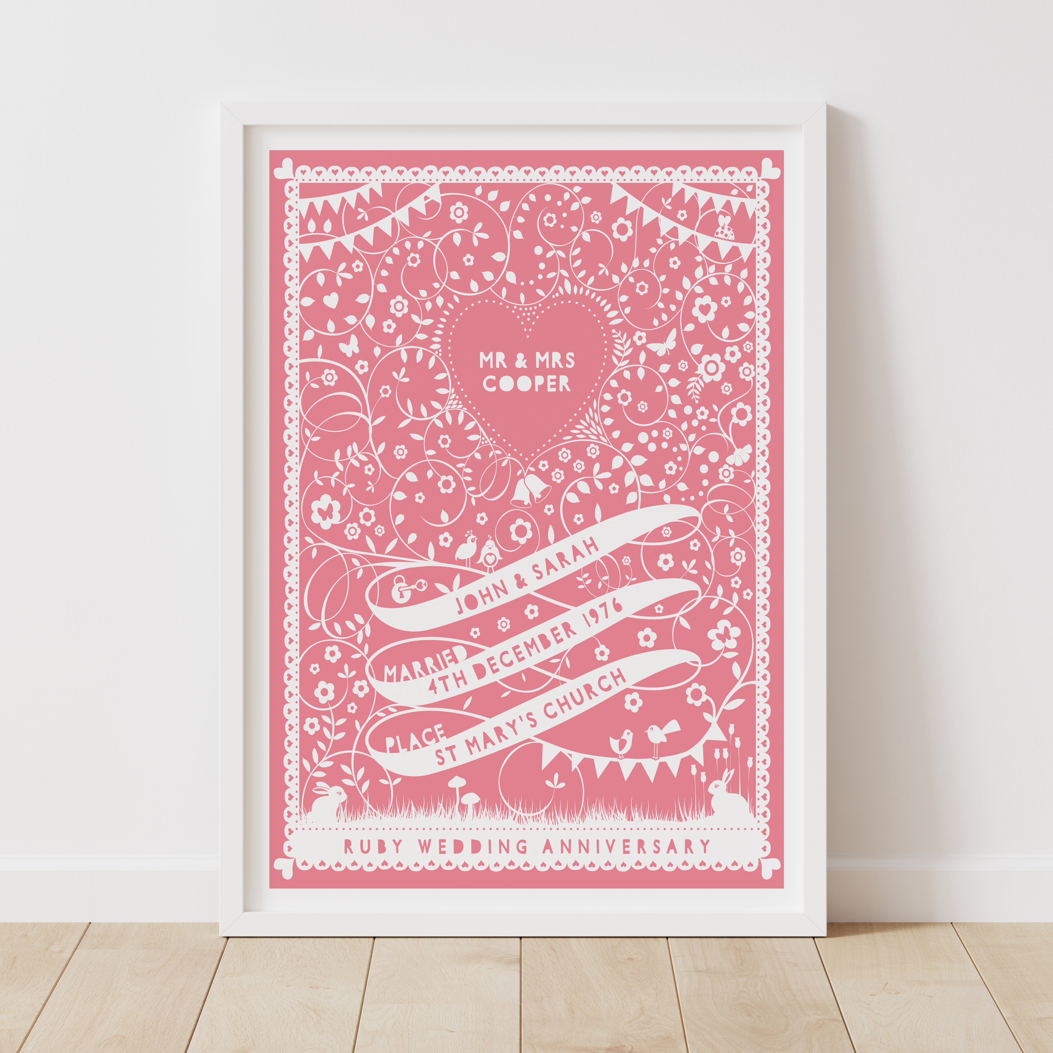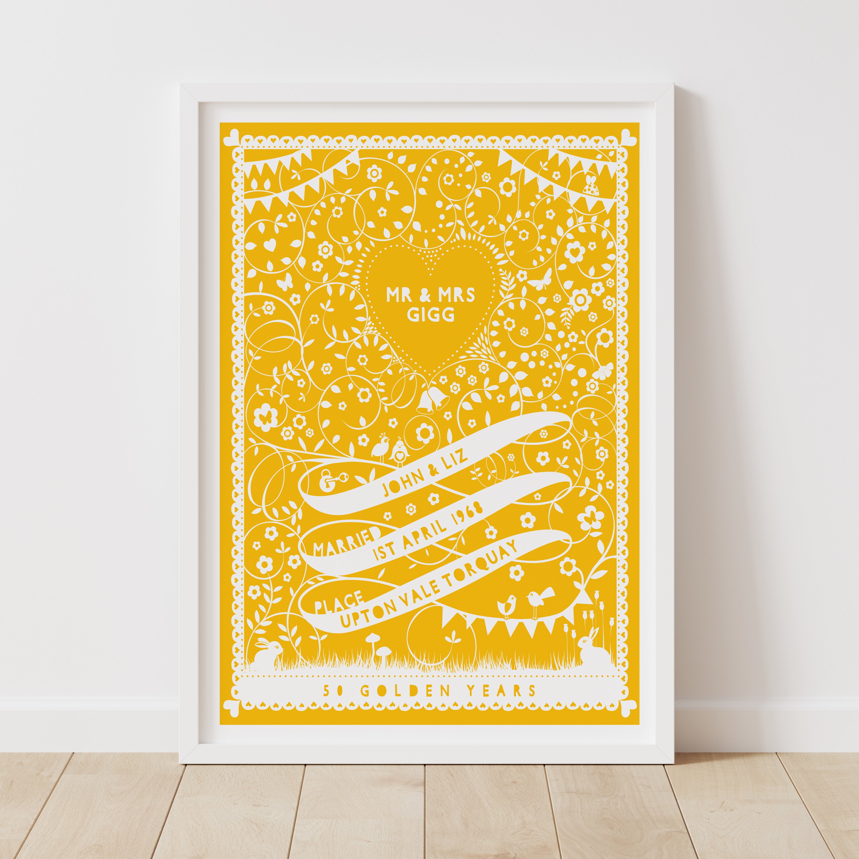 This personalised illustration will make a lovely wedding or anniversary present for the happy couple.