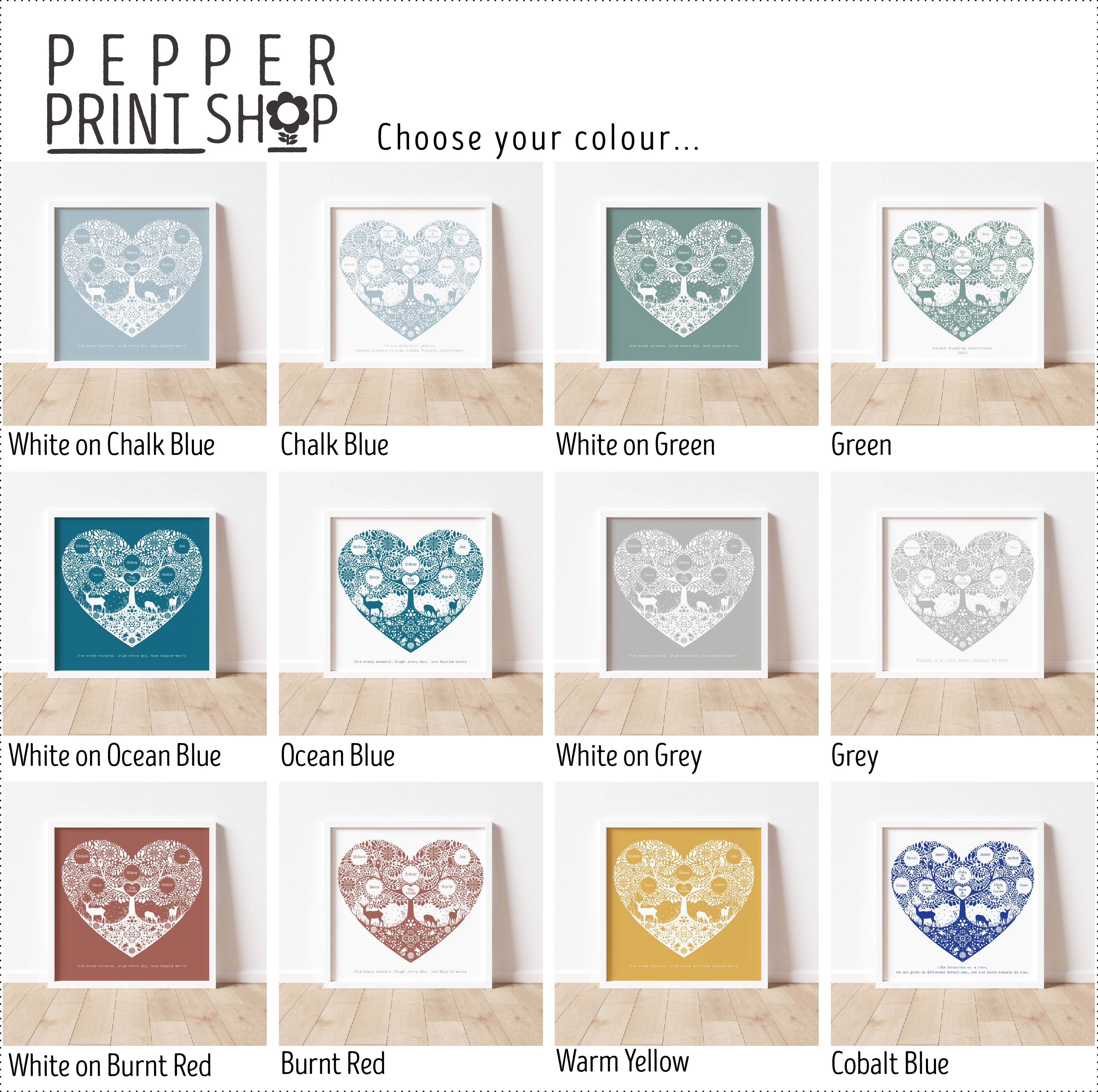 ***You can decide where each family member's name appears - see the black numbered key in the image gallery for a guide to the position of each name.***